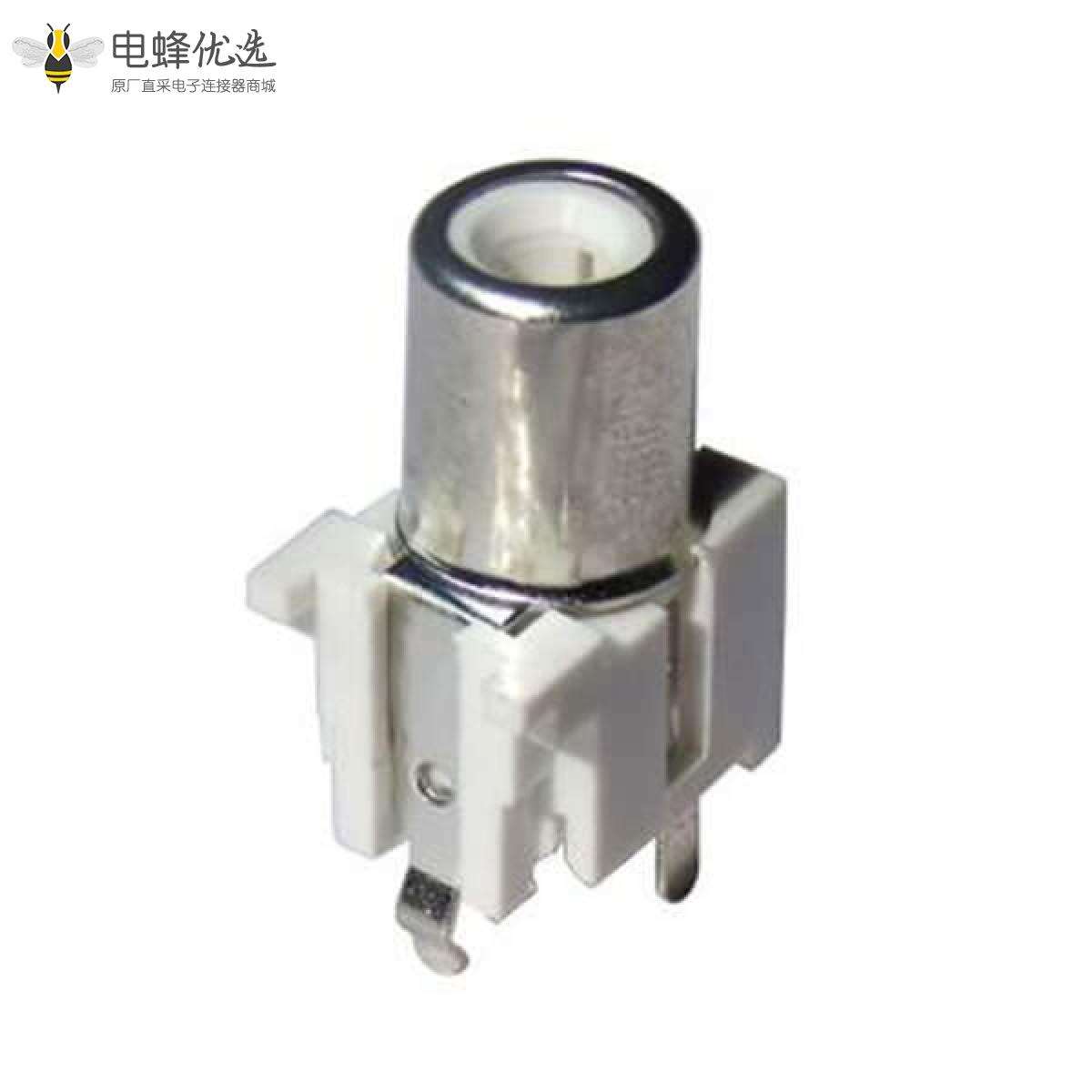 RCA连接器,母,插座,180°直式,单孔,接板,插板,白色塑胶,ABS.PBT,镀镍;