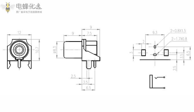 RCA连接器,母,插座,90°弯式,单孔,接板,插板,黑色塑胶,ABS.PBT,镀镍;