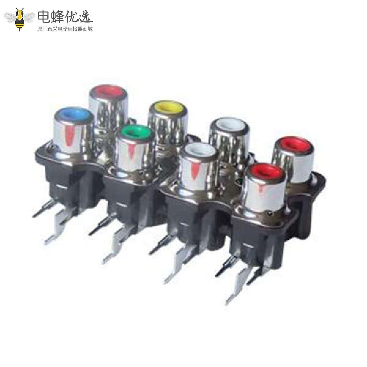 RCA连接器,母,插座,90°弯式,8孔,2*4,接板,插板,带金属屏蔽,黑色塑胶,ABS.PBT,镀镍;