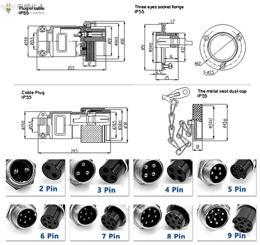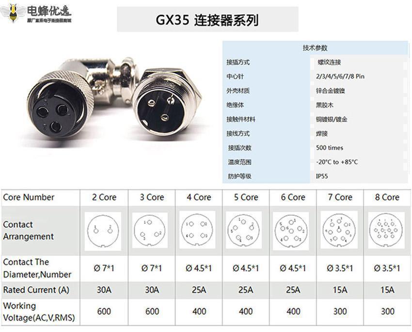 - GX35,标准款,插头/插座,5芯,公/母,直式,面板/接线,2孔法兰;