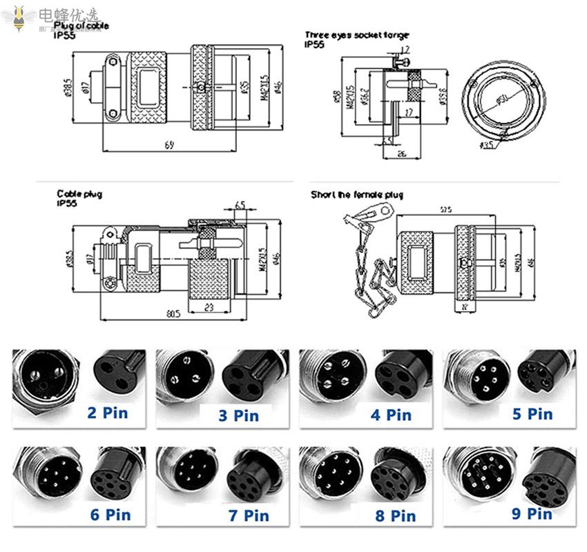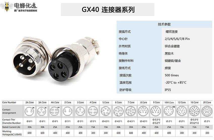 - GX40,标准款,插头,16芯,公,直式,接线/面板;