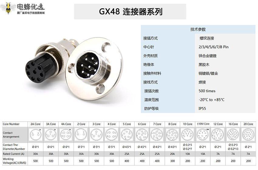 - GX48,反装款,插头/插座,4芯,公/母,直式;