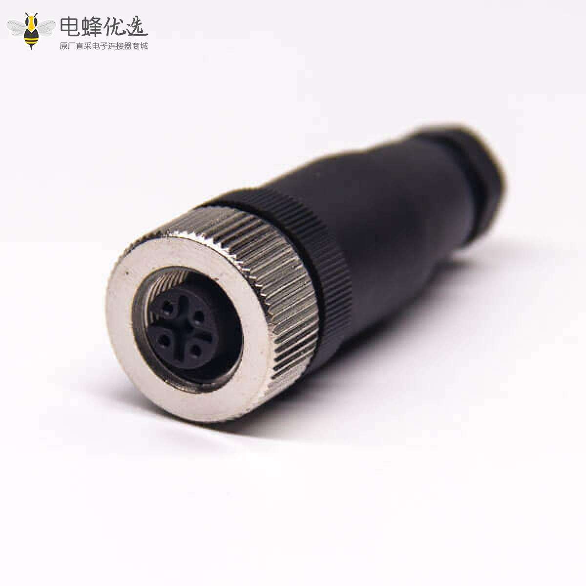 M12,组装接头,A编码,4芯,直式,母头,接线,螺丝锁线,不带屏蔽 ;
