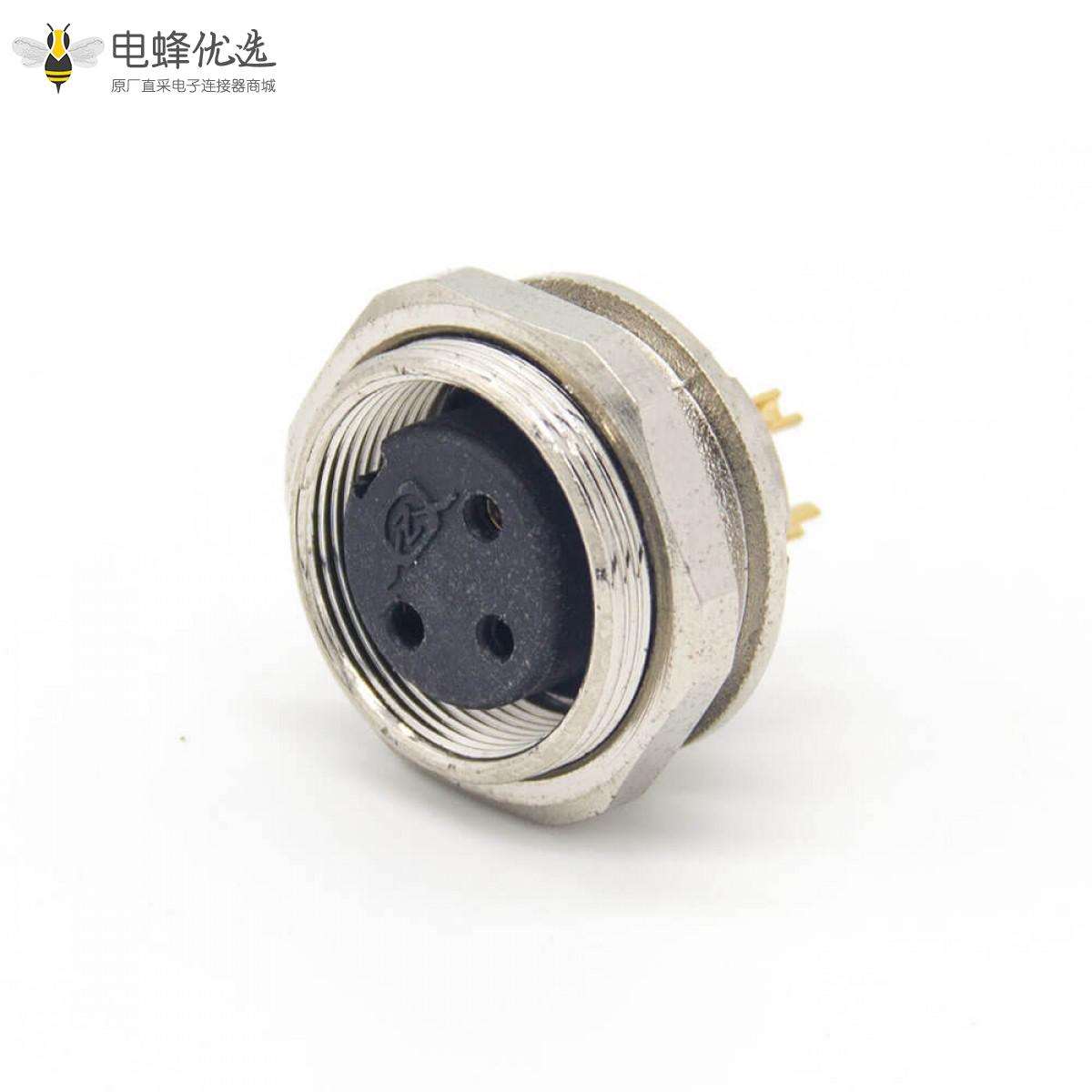 M16,3芯,直式,母插座,前锁穿墙,焊杯,接线,带屏蔽;