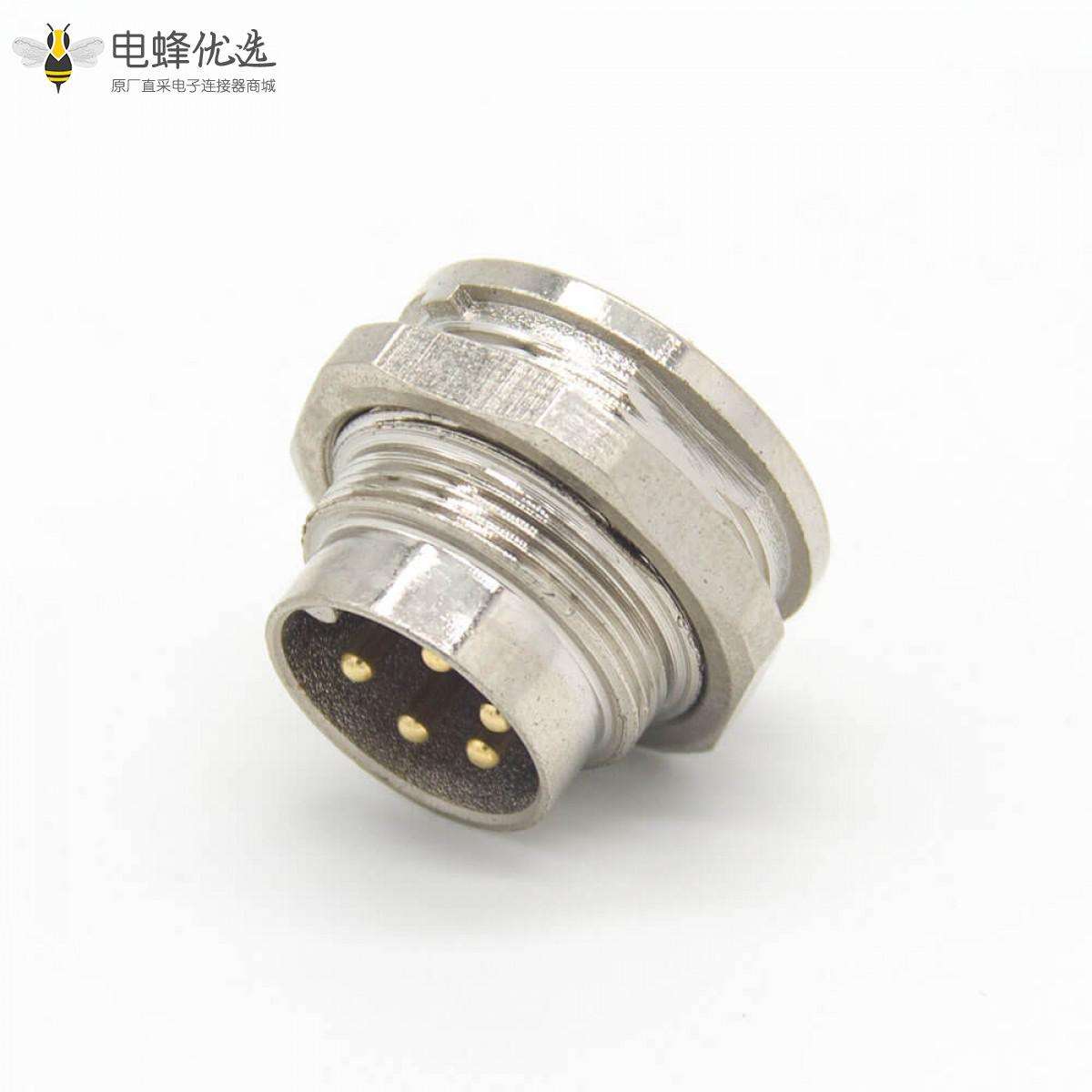 M16,A型,5芯,直式,公插座,前锁穿墙,焊杯,接线,带屏蔽;