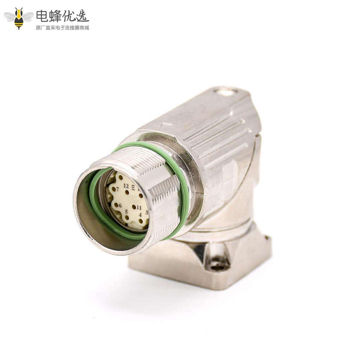 M623,12芯,公头,弯式,面板安装,四孔法兰;