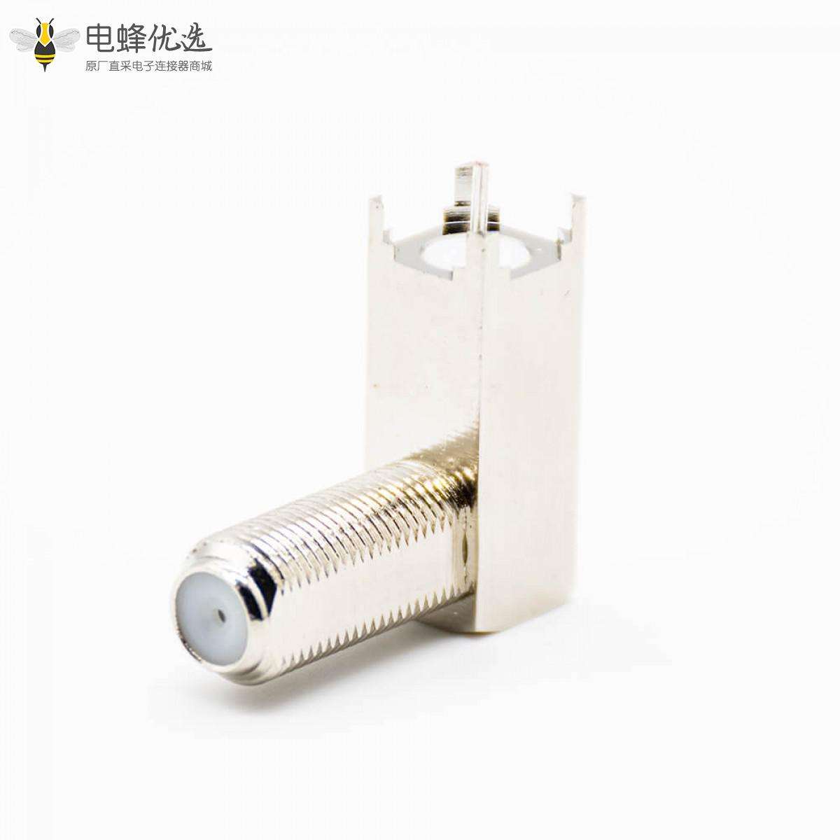 - F头,母头,弯式,标准,75Ω,PCB板安装,插孔,加高型,锌合金,镀镍;