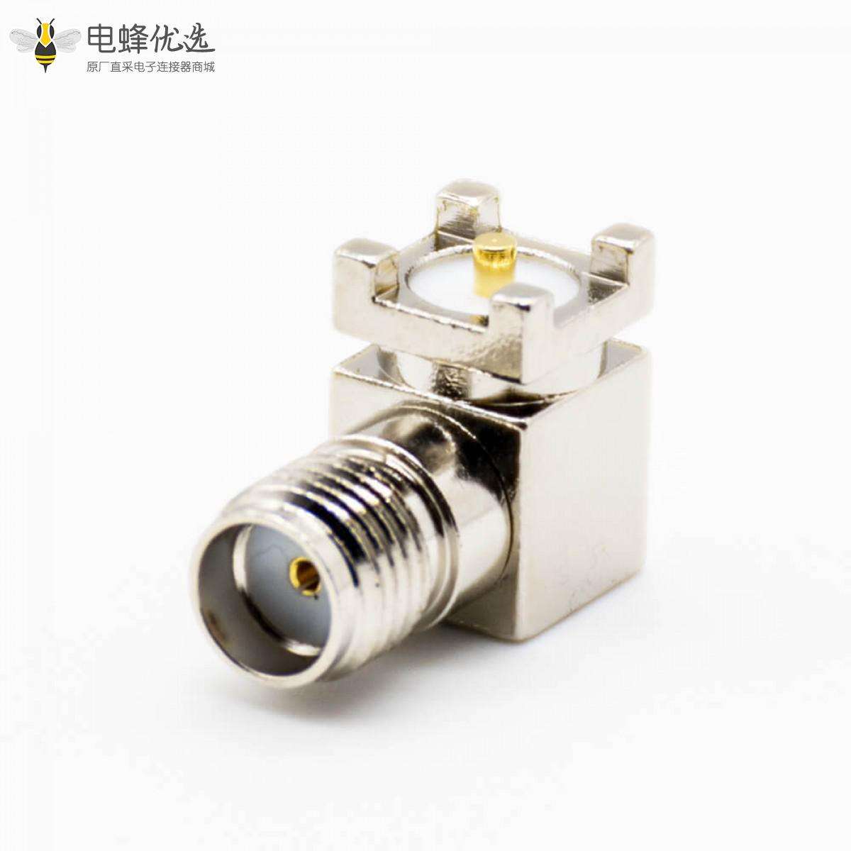 SMA,母头,弯式,标准,50Ω,PCB板安装,贴板,锌合金,镀镍;