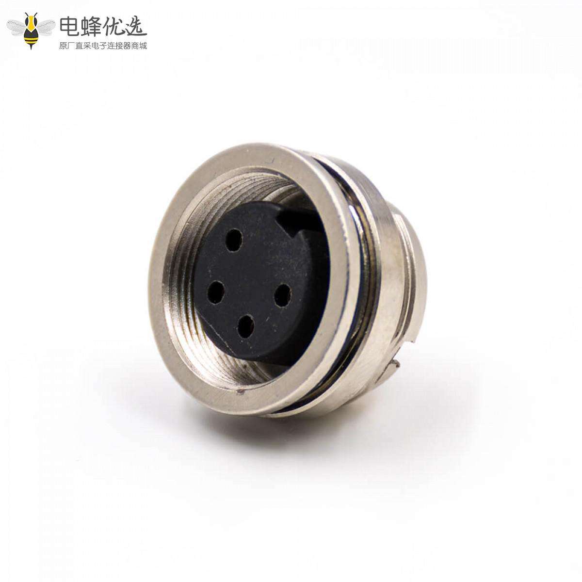 M16板端插座,母插座,4芯,A扣,直式,后锁穿墙,焊杯,接线;
