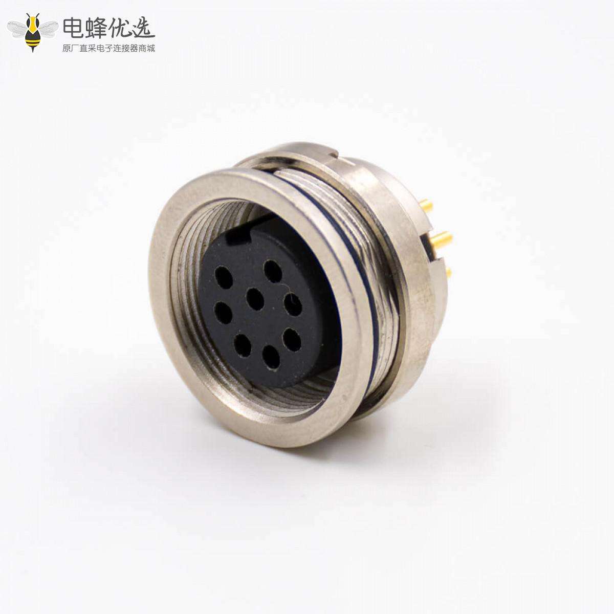 M16板端插座,母插座,8芯,A扣,直式,後鎖穿牆,PCB板,焊接;