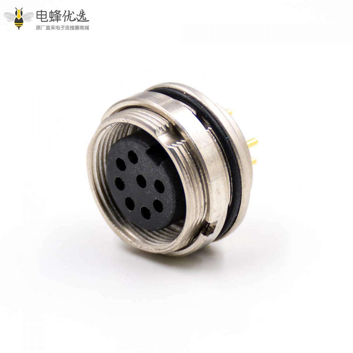 M16板端插座,母插座,8芯,A扣,直式,前锁穿墙,PCB板,焊接;