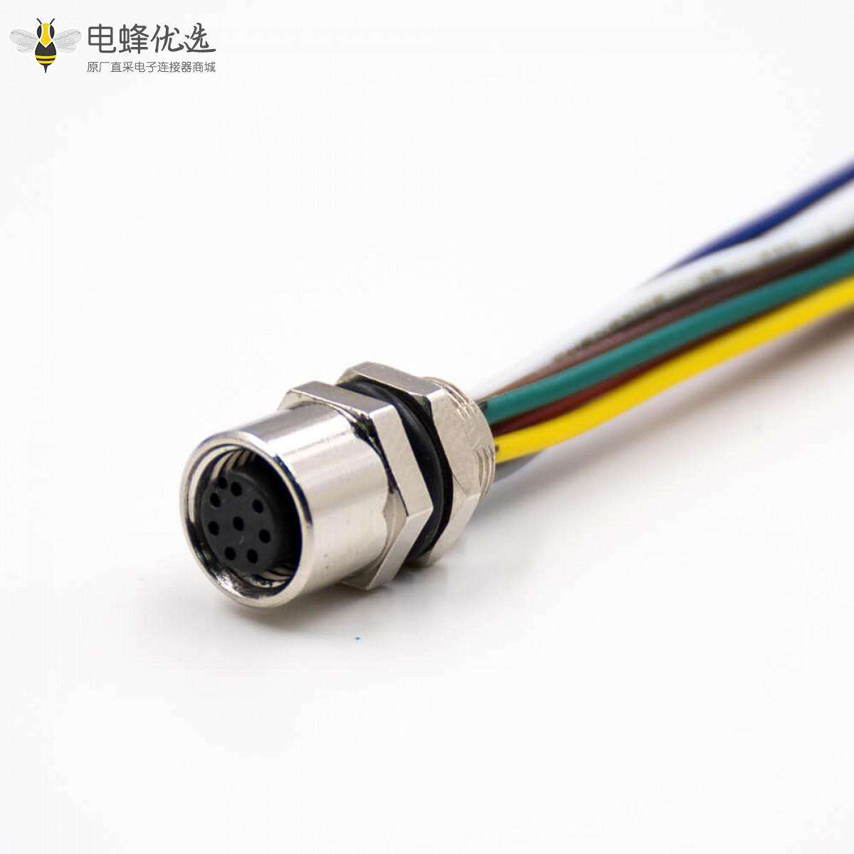 M8,8芯,A扣,母头,直式,后锁板,板端插座,接线,焊接式;