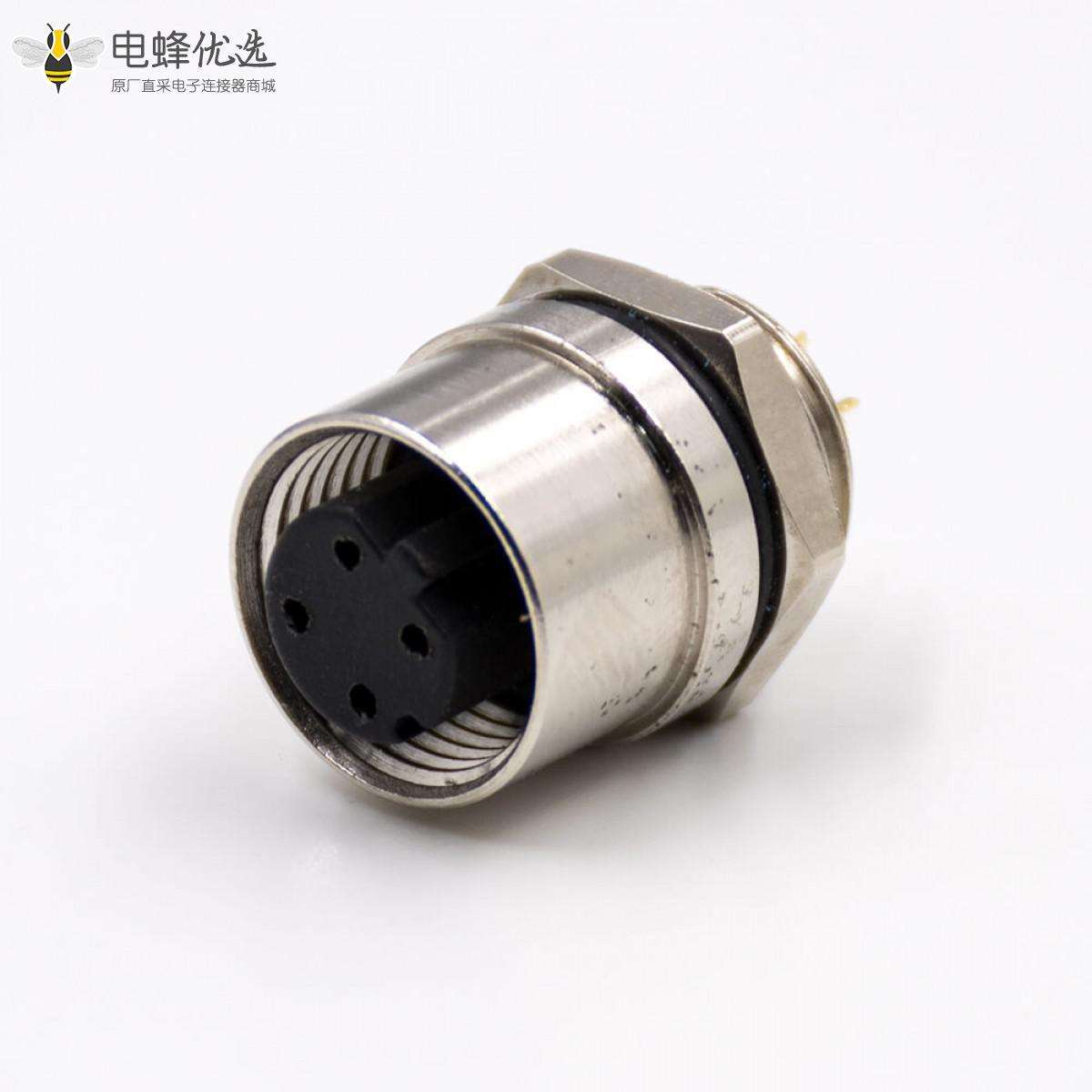M12,4芯,D扣,母头,直式,后锁板,板端插座,接线,焊接式;