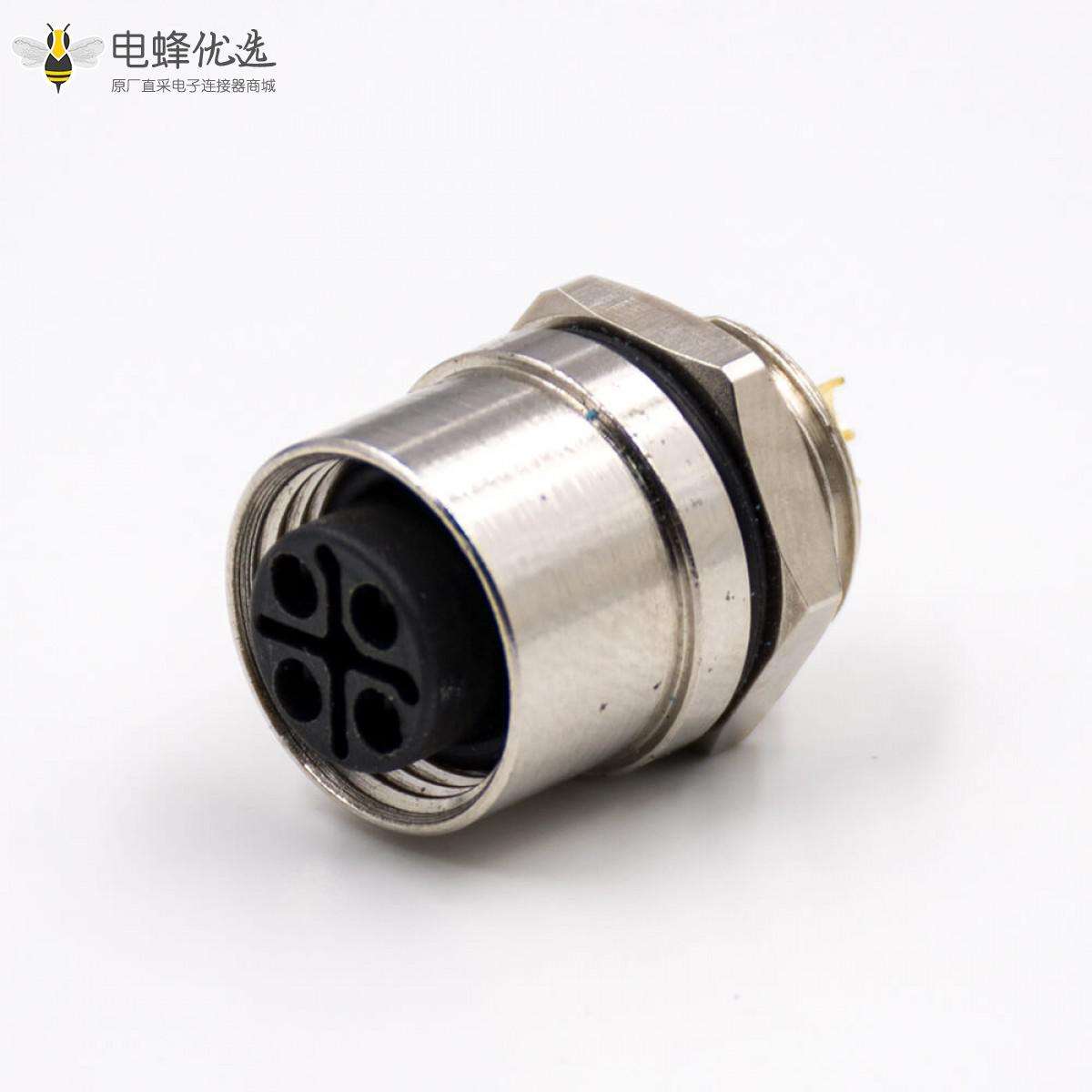 M12,4芯,S扣,母头,直式,后锁板,板端插座,接线,焊接式;