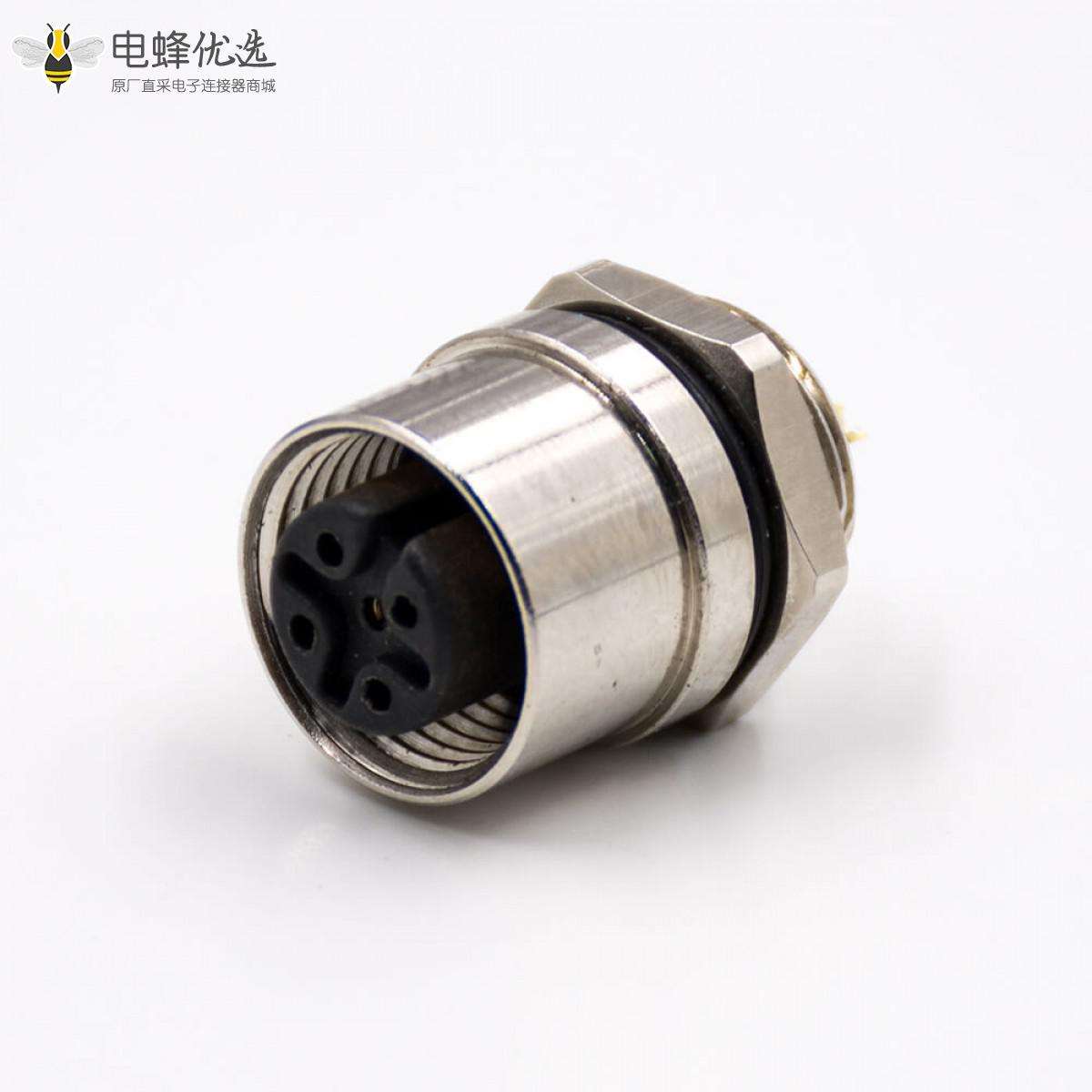 M12,5芯,A扣,母头,直式,后锁板,板端插座,接线,焊接式;