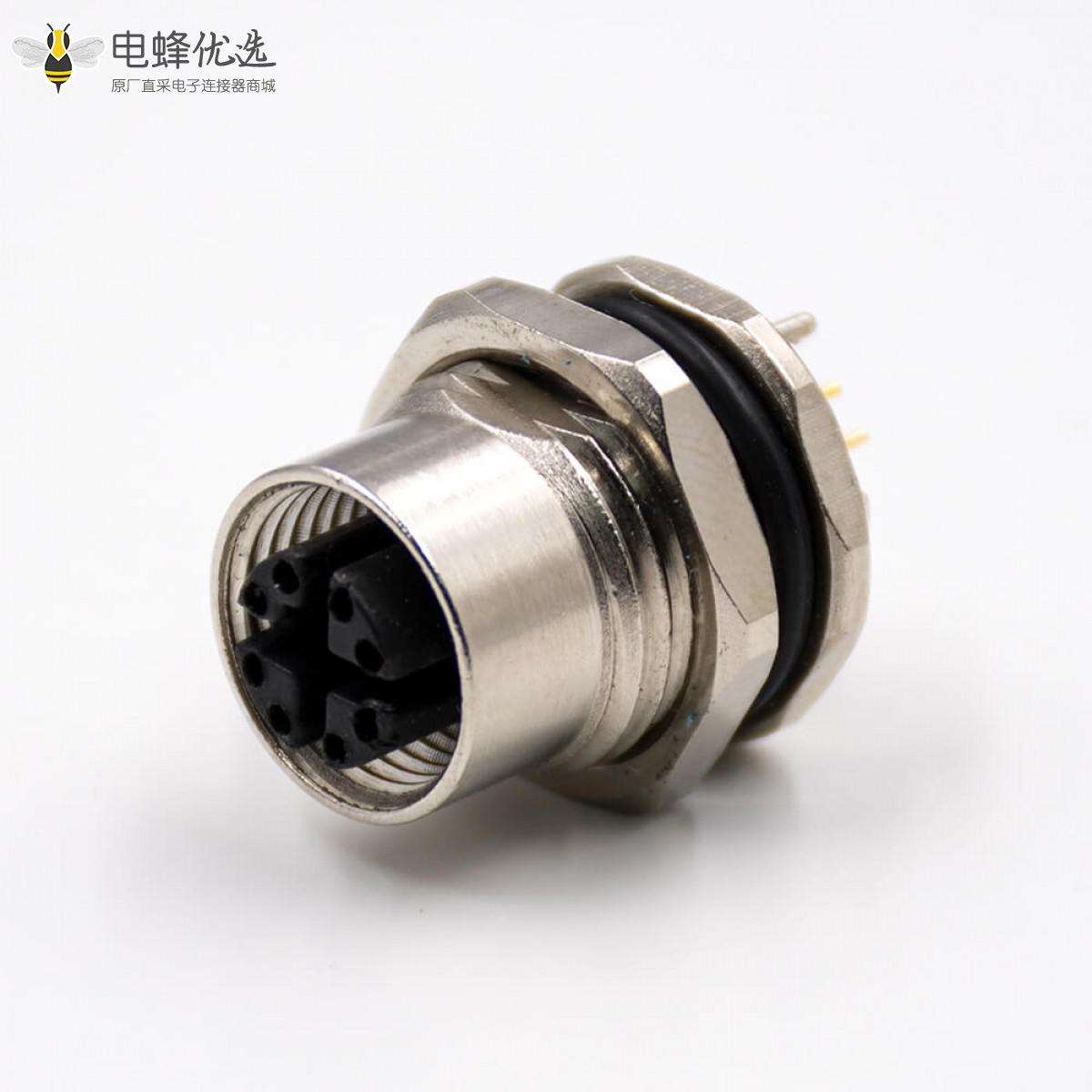 M12,8芯,X扣,板端插座,母头,直式,接PCB板,前锁板;