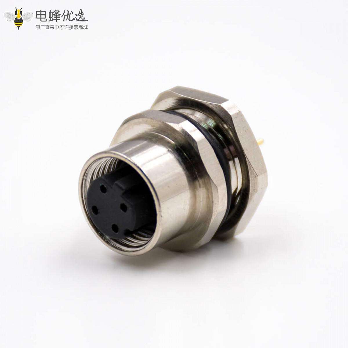 - M12板端插座,D扣,180°,4芯母头,接PCB板,焊接式;