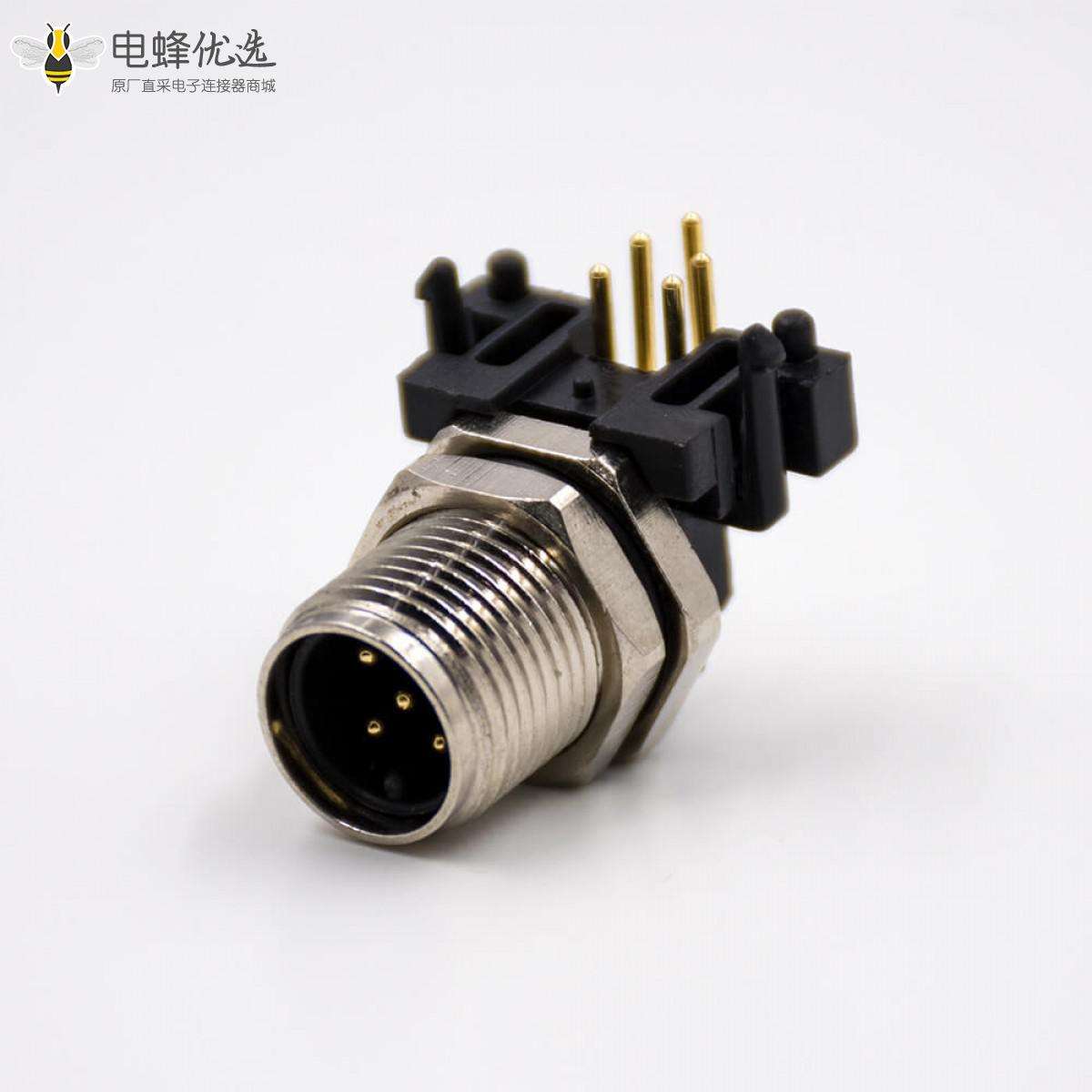 - M12板端插座,A扣,弯式,5芯,公头,PCB板安装;