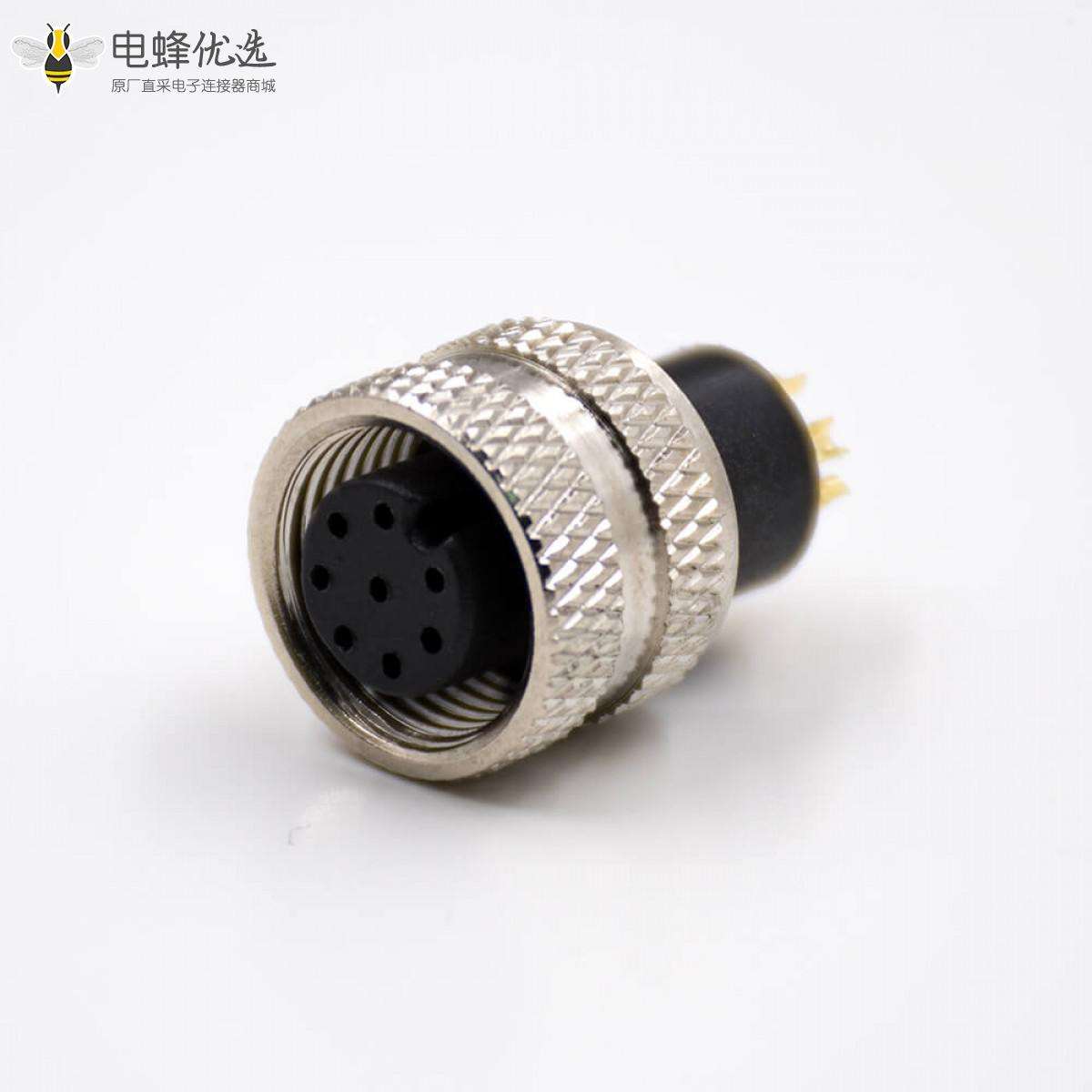 - M12组装接头,A扣,8芯,母头,直式,注塑焊线式,不带屏蔽;