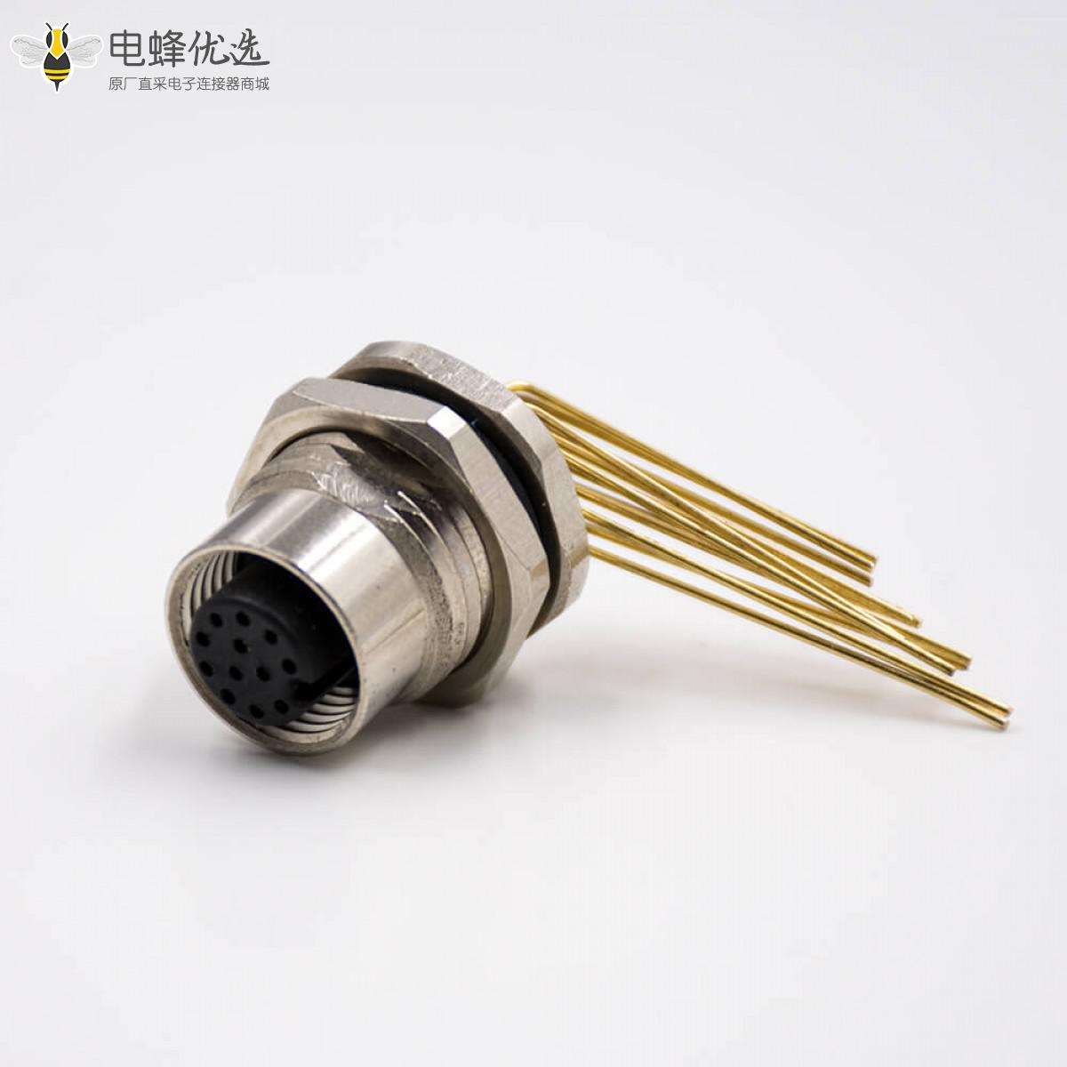 M12板端插座,A扣,弯式,12芯,母头,前锁板,接PCB板;