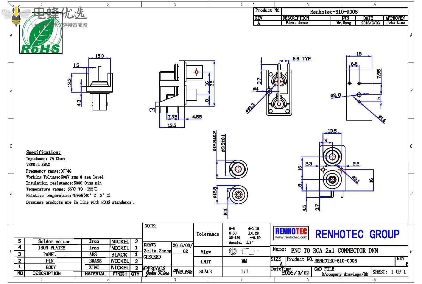 - 阻抗: 75ohm