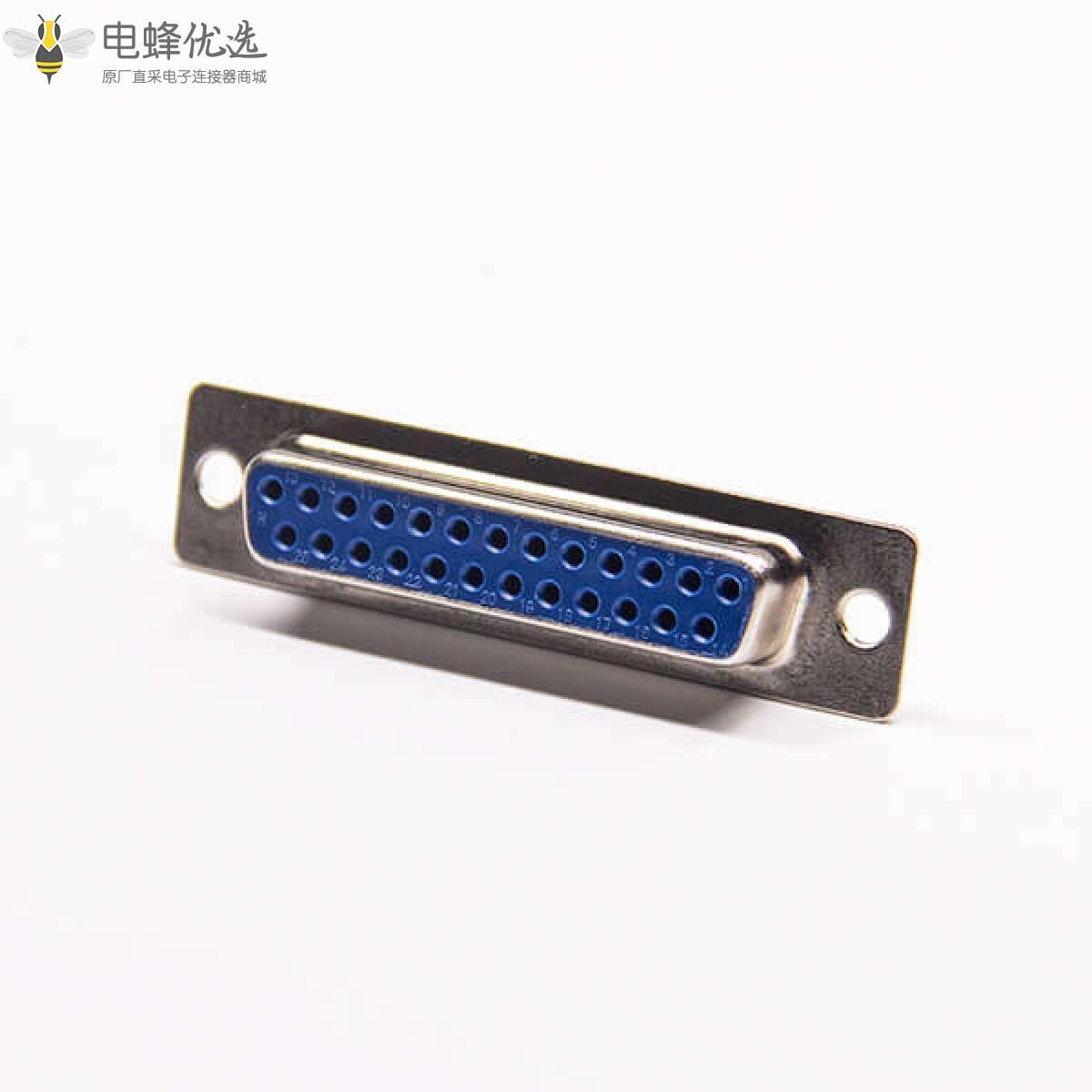 D-Sub连接器,插座,25芯,2排,单端口,直式,车针,镀银,焊杯,面板安装,外壳