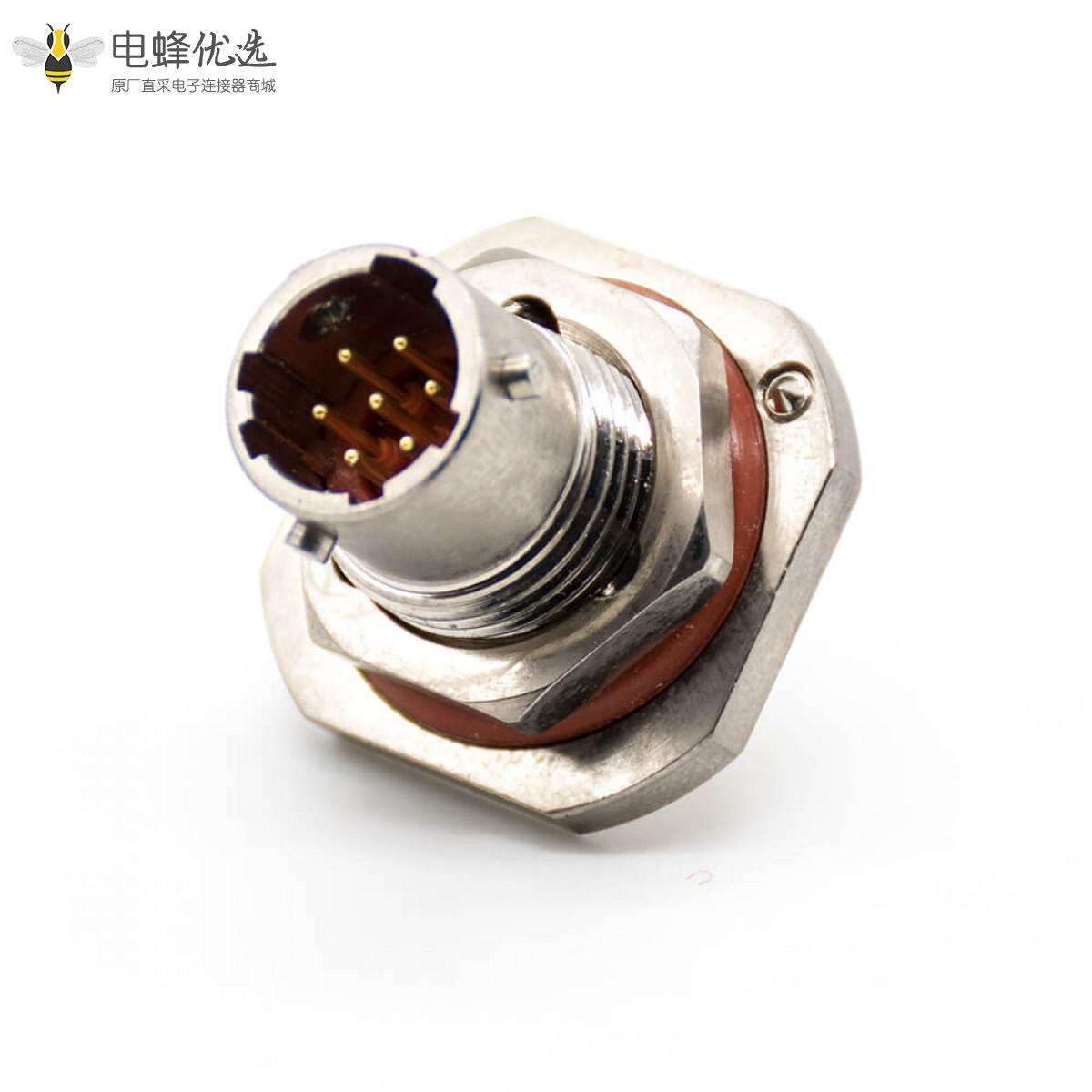 - Y50X,插座,7芯,公头,直式,卡口连接,PCB板安装,前锁穿墙,铝合金,镀镍,防水