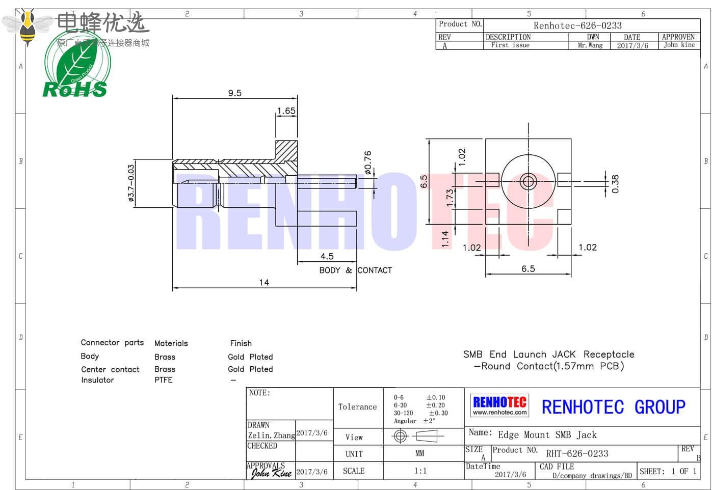 描述:产品特征:PCB板端,母头,边缘卡板,RF射频同轴,SMB连接器,50欧姆;推入式设计,快速安装,使用方便;高性能SMB接头,宽频,低反射;非关键区域采用压铸生产,节省成本,不影响性能;高质量原厂出货,30天无忧退换货;来自品牌OEM原厂批发,相同质量,更实惠的价格。SMB连接器的主要应用:航天和国