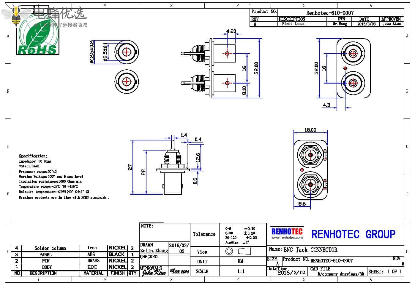 - 阻抗: 50 ohm