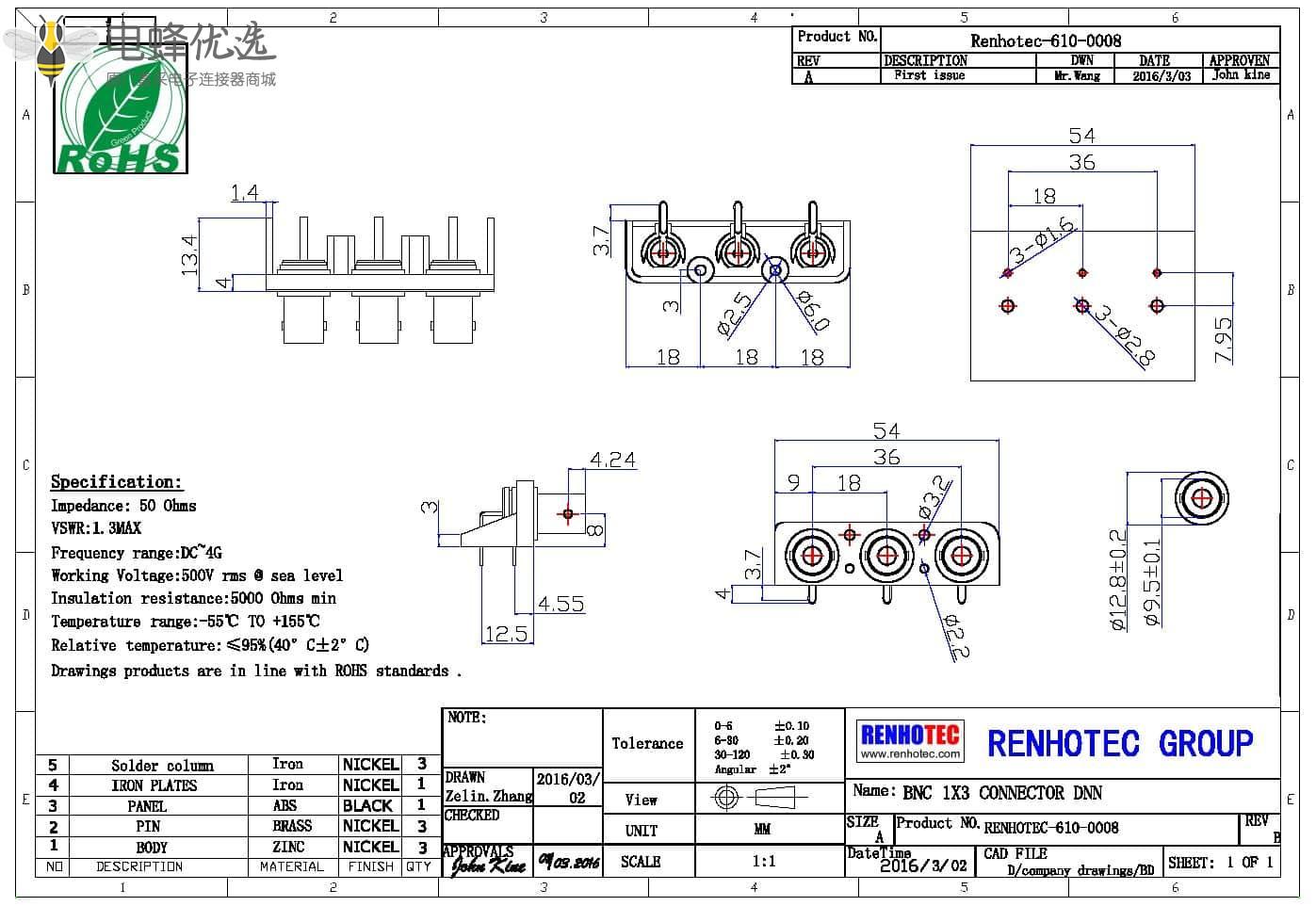 - PCB板端,母头,弯式,RF射频同轴,BNC连接器,50欧姆,锌合金;