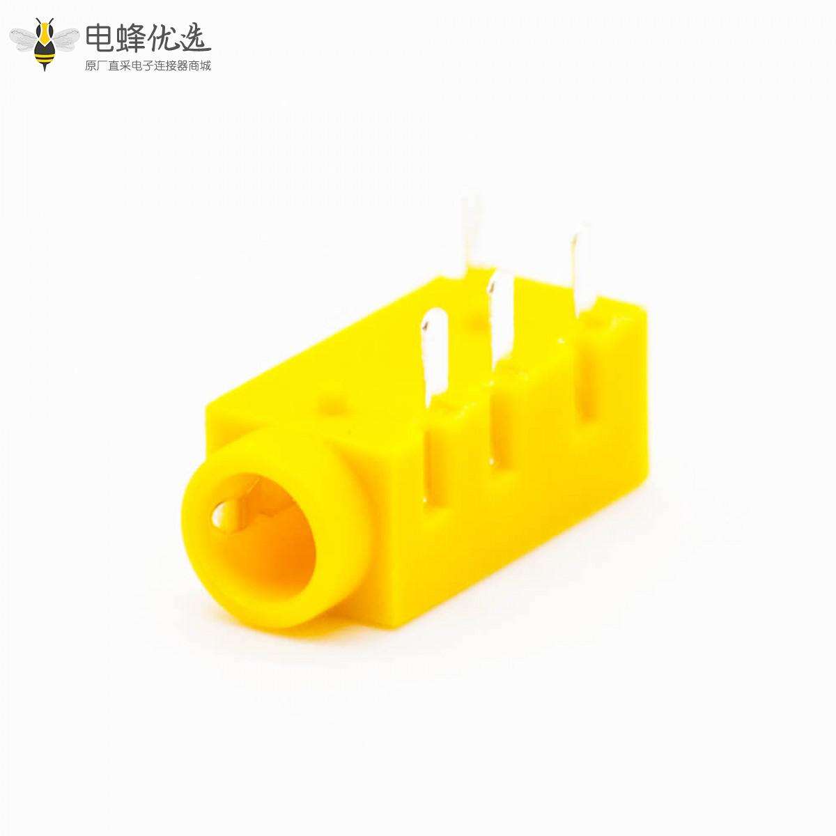 DC电源连接器,母插座,插孔,贴片焊接,弯式,不带屏蔽,塑料,黄色;