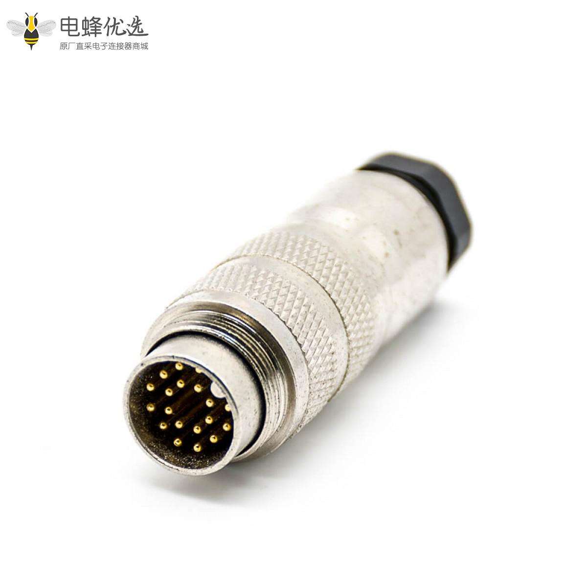 M16,19芯,公,直式,接线,焊线,带屏蔽;
