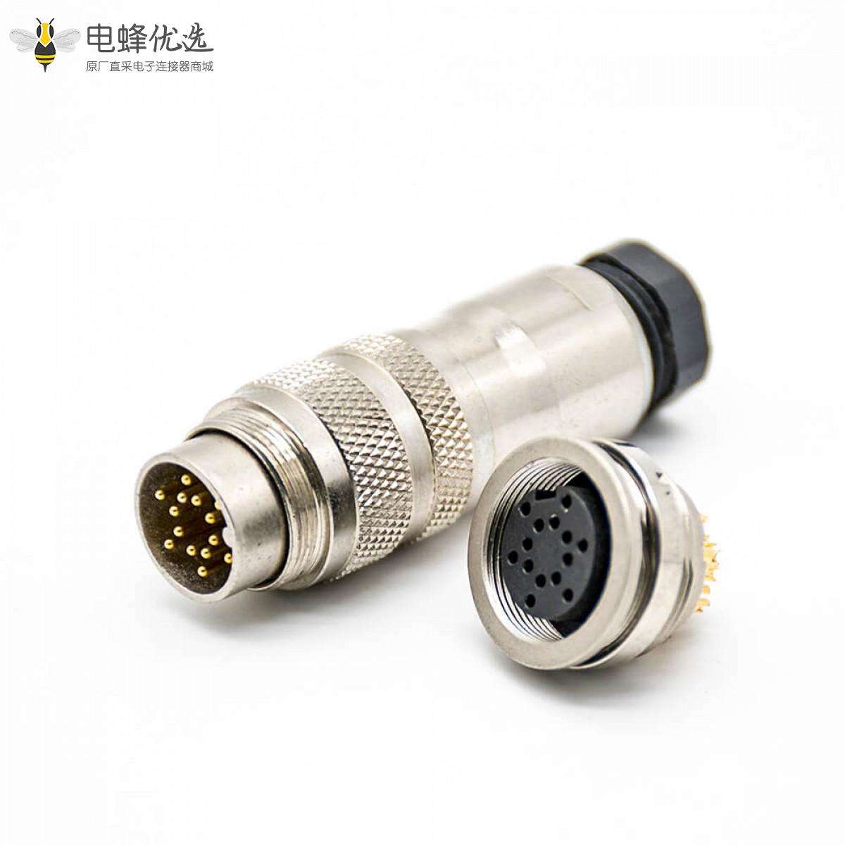 14芯,公插头,接线,焊线,母插座,面板安装,后锁板,直式,带屏蔽,M16连接器;