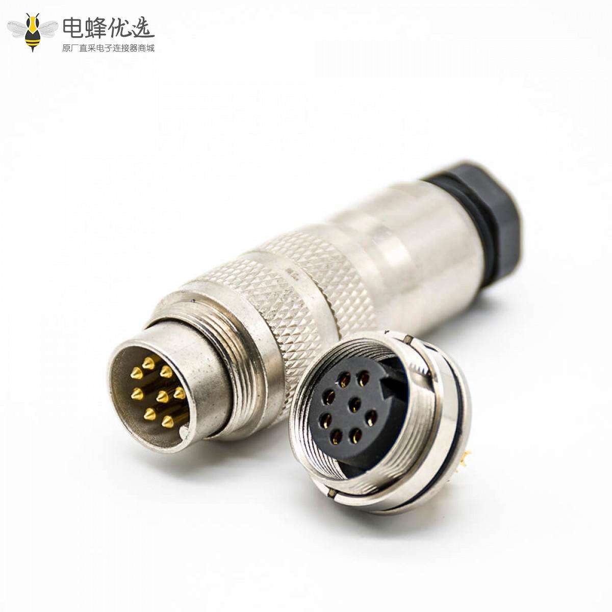 8芯,公插头,接线,焊线,母插座,面板安装,后锁板,直式,带屏蔽,M16连接器;