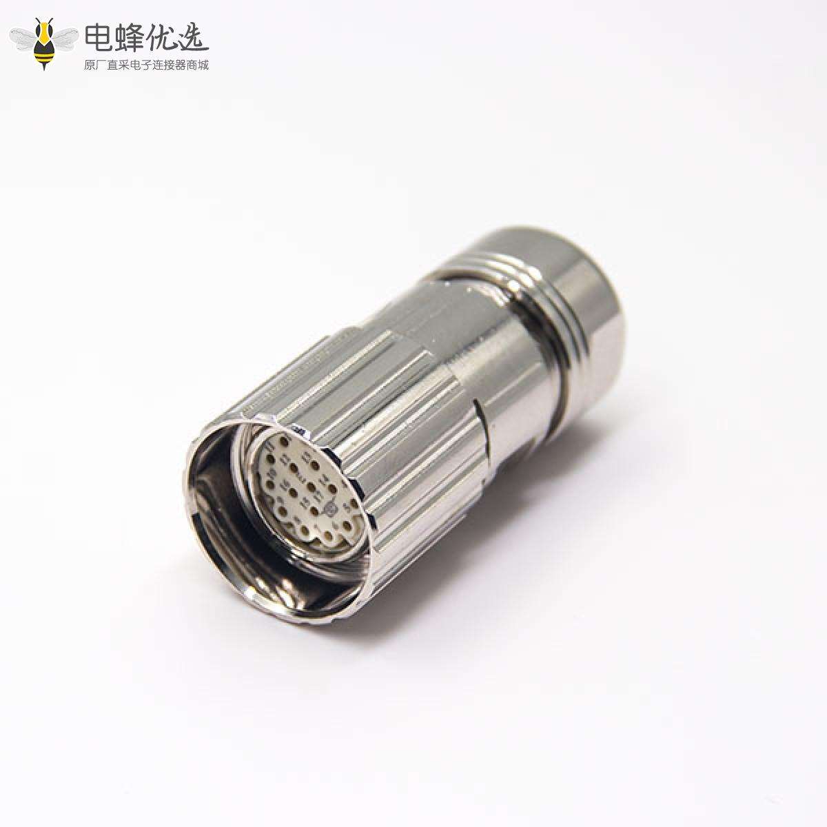 M23, 组装接头, 17芯, 母, 直式, 压接, 带屏蔽;