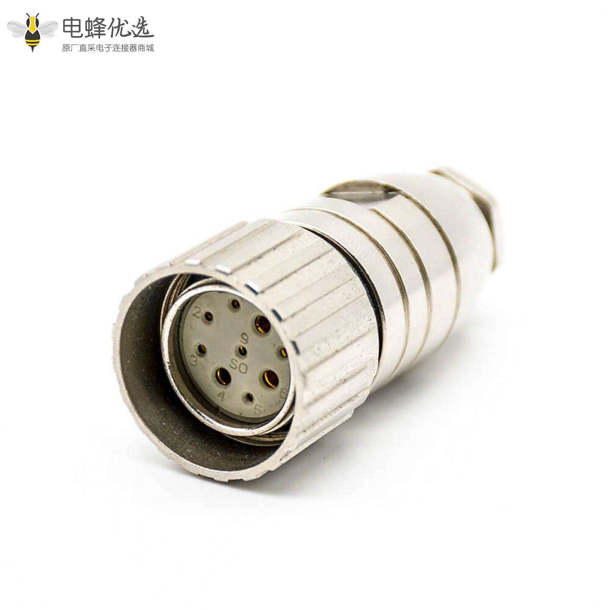 M23,9芯,母,直式,接线,焊线,带屏蔽;