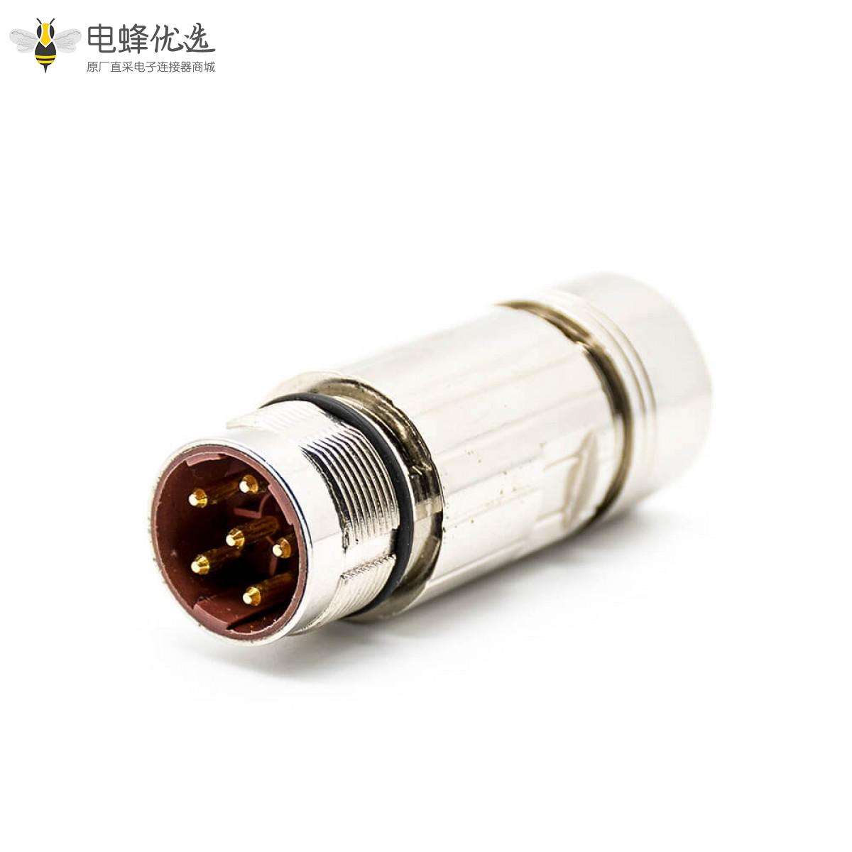 6芯,公,直,电缆,焊线,屏蔽,M23连接器;