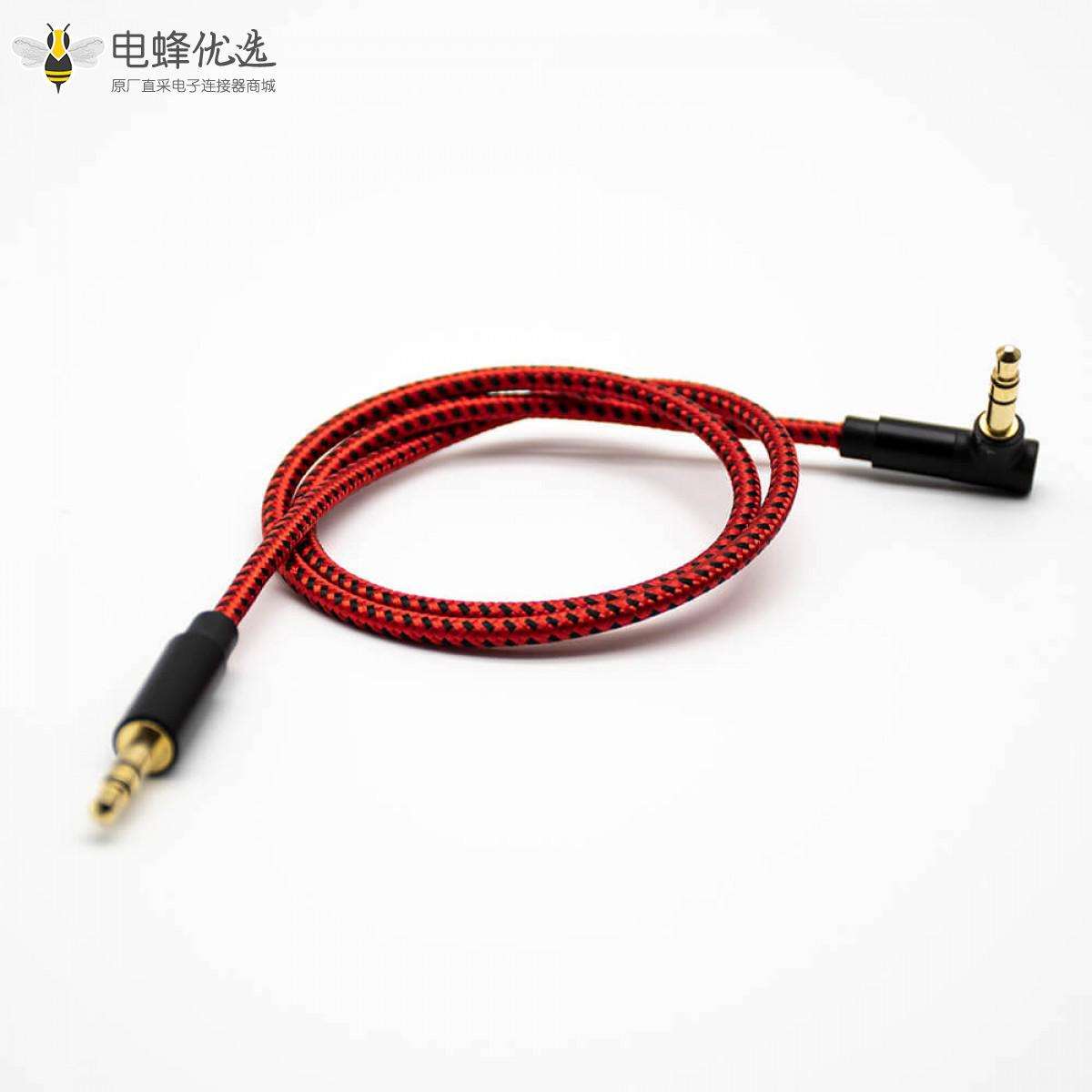 3.5mm,3极,镀金,公对公,直对弯,红色,音频线,0.5米;