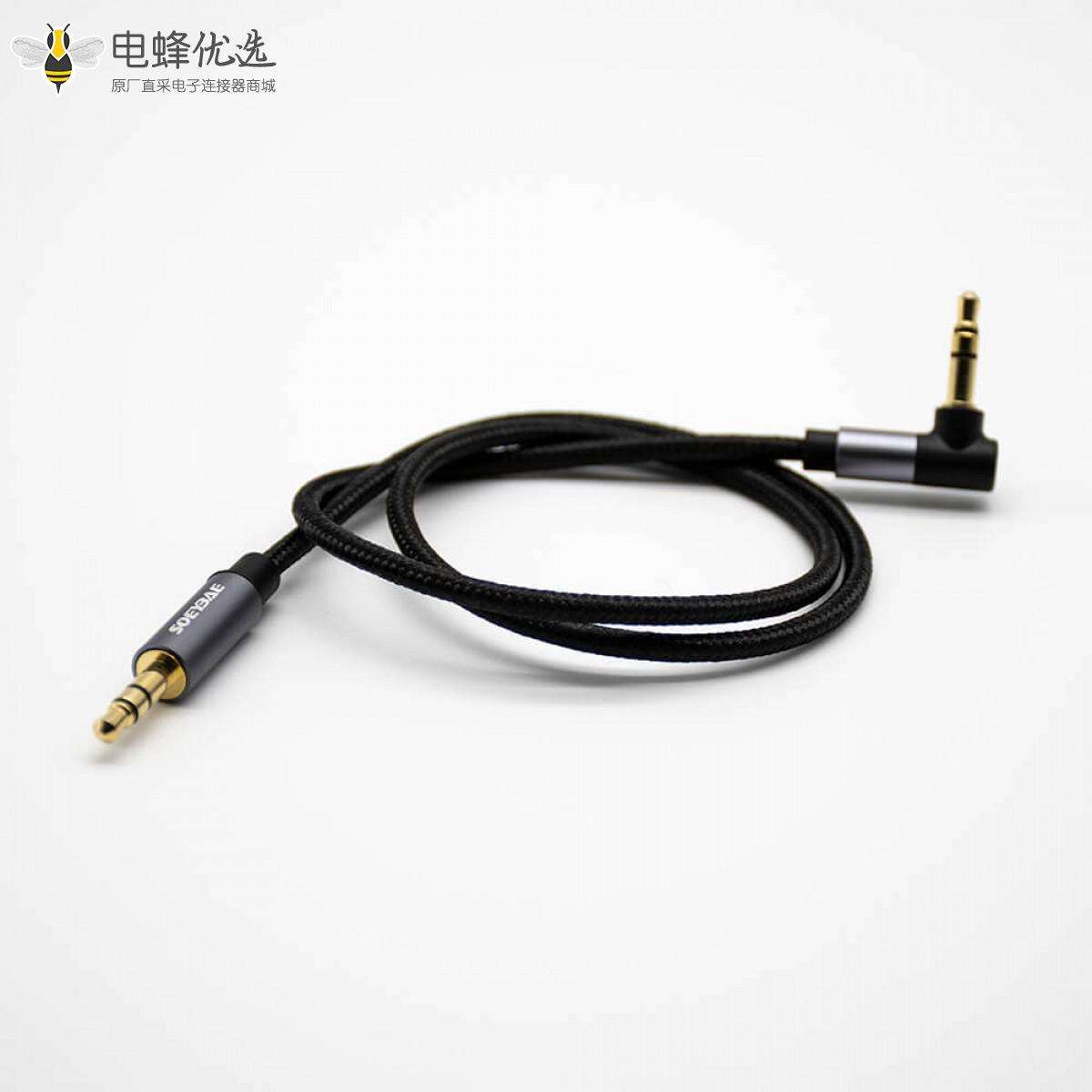3.5mm,3极,镀金,耳机插头,公对公,直对弯,黑色音频线,0.5米;
