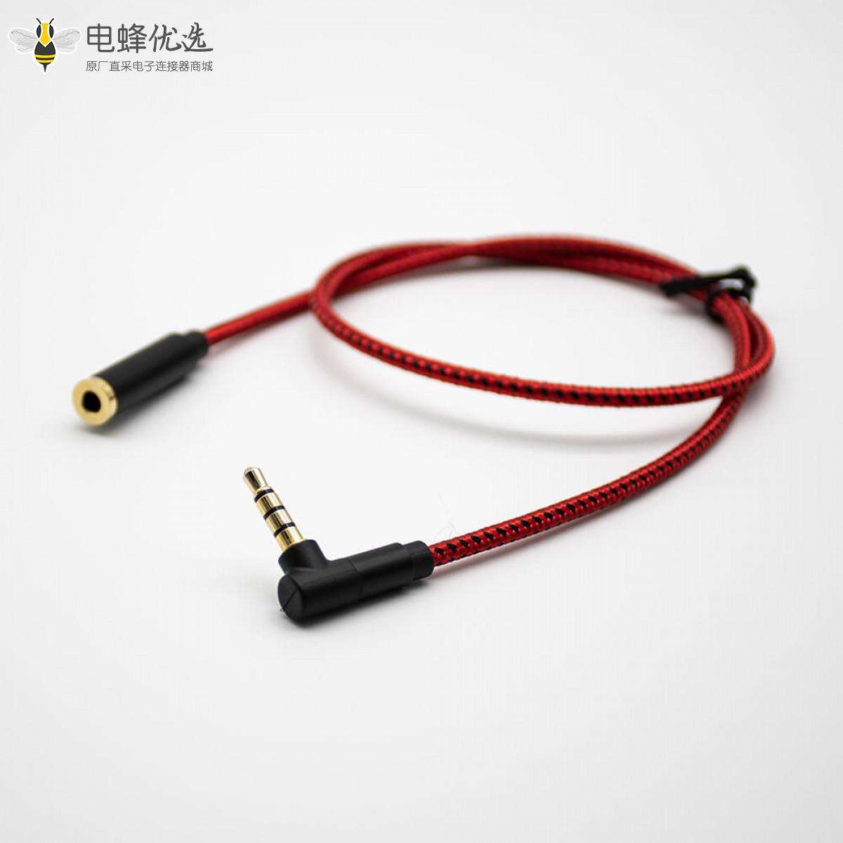 4极,耳机镀金插头,弯公,直母,0.5米,红色,音频延长线;