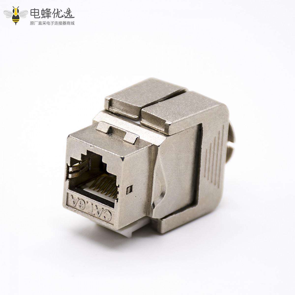 RJ45插座,8P8C,单端口,1*1,直式180°,触头镀金,插孔,面板安装,带屏蔽,CAT6A,免工具;