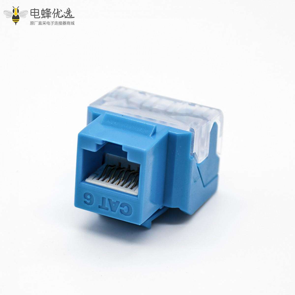 RJ45插座,8P8C,单端口,1*1,弯式90°,触头镀金,插孔,面板安装,非屏蔽,CAT6,蓝色;