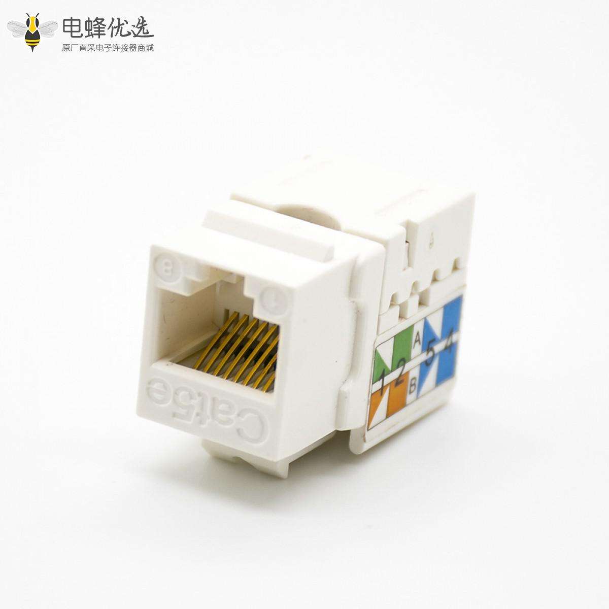 RJ45插座,8P8C,单端口,1*1,弯式90°,触头镀金,插孔,面板安装,非屏蔽,CAT5E;