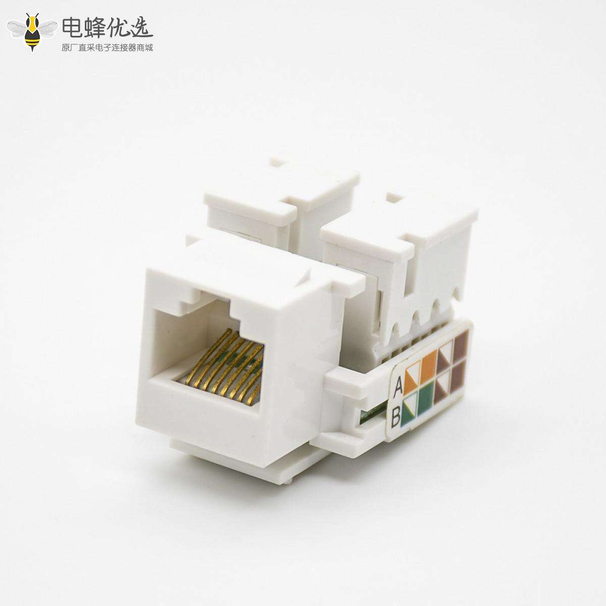 RJ45插座,8P8C,单端口,1*1,弯式90°,触头镀金,插孔,面板安装,非屏蔽,CAT5E;