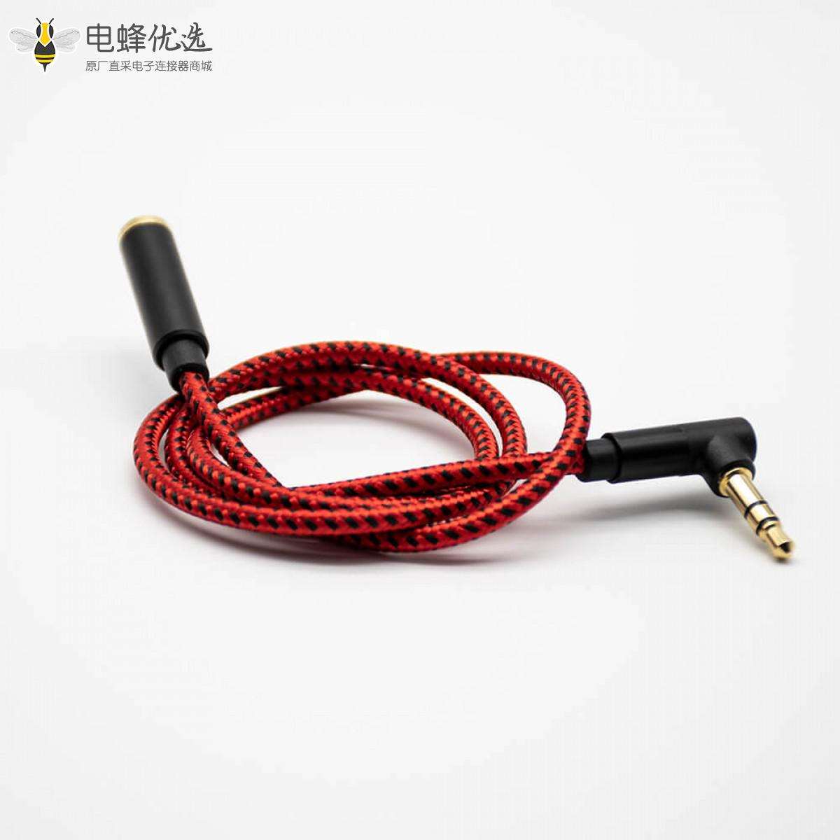 3.35mm,3极,插头镀金,公对母,弯对直,红色,音频延长线,0.5米;