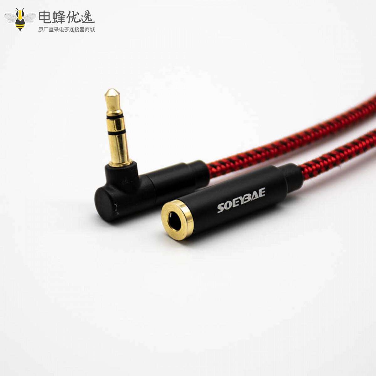 3极,3.5mm,镀金插头,弯公,直母,红色,音频线,0.5米;