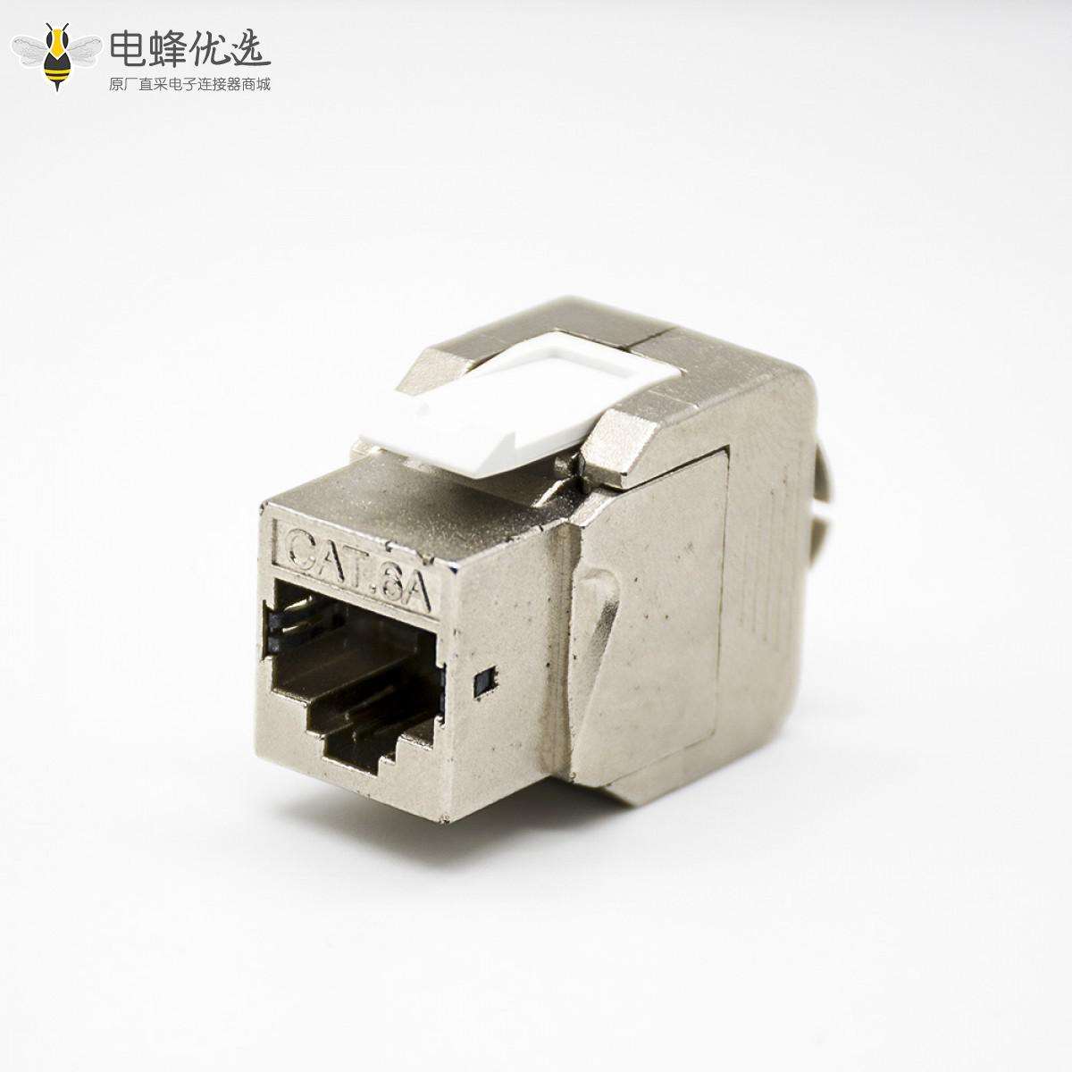 RJ45插座,8P8C,单端口,1*1,直式180°,触头镀金,插孔,面板安装,带屏蔽,CAT6A,免工具;