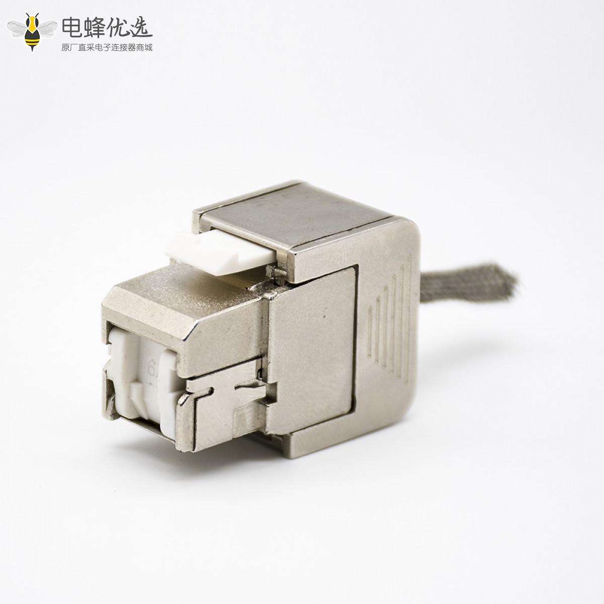 RJ45插座,8P8C,单端口,1*1,直式180°,触头镀金,插孔,面板安装,带屏蔽,CAT6A,免工具,锌合金;
