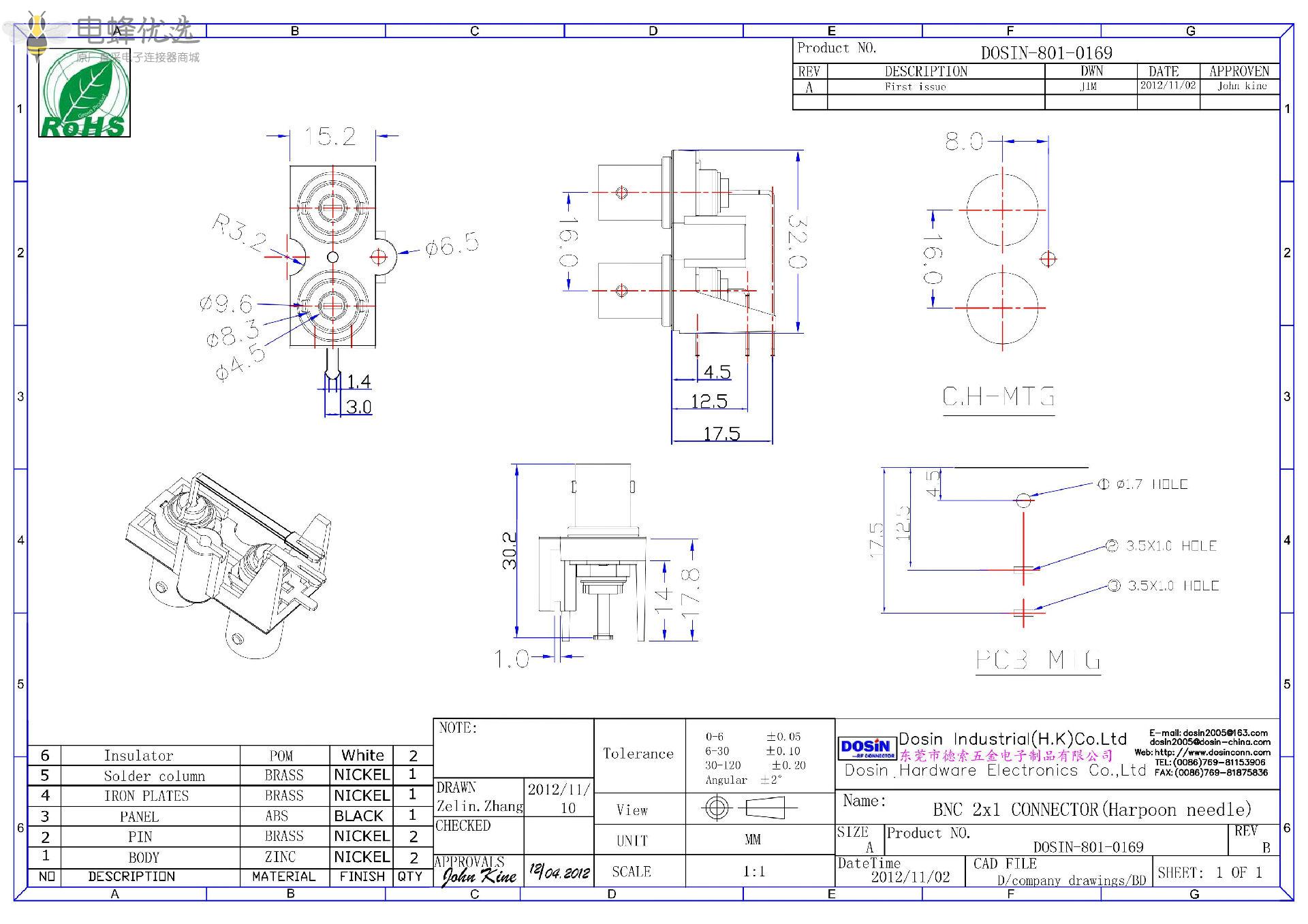 - 中心接触电阻:≦ 1.5 mΩ (Milliohms max.)