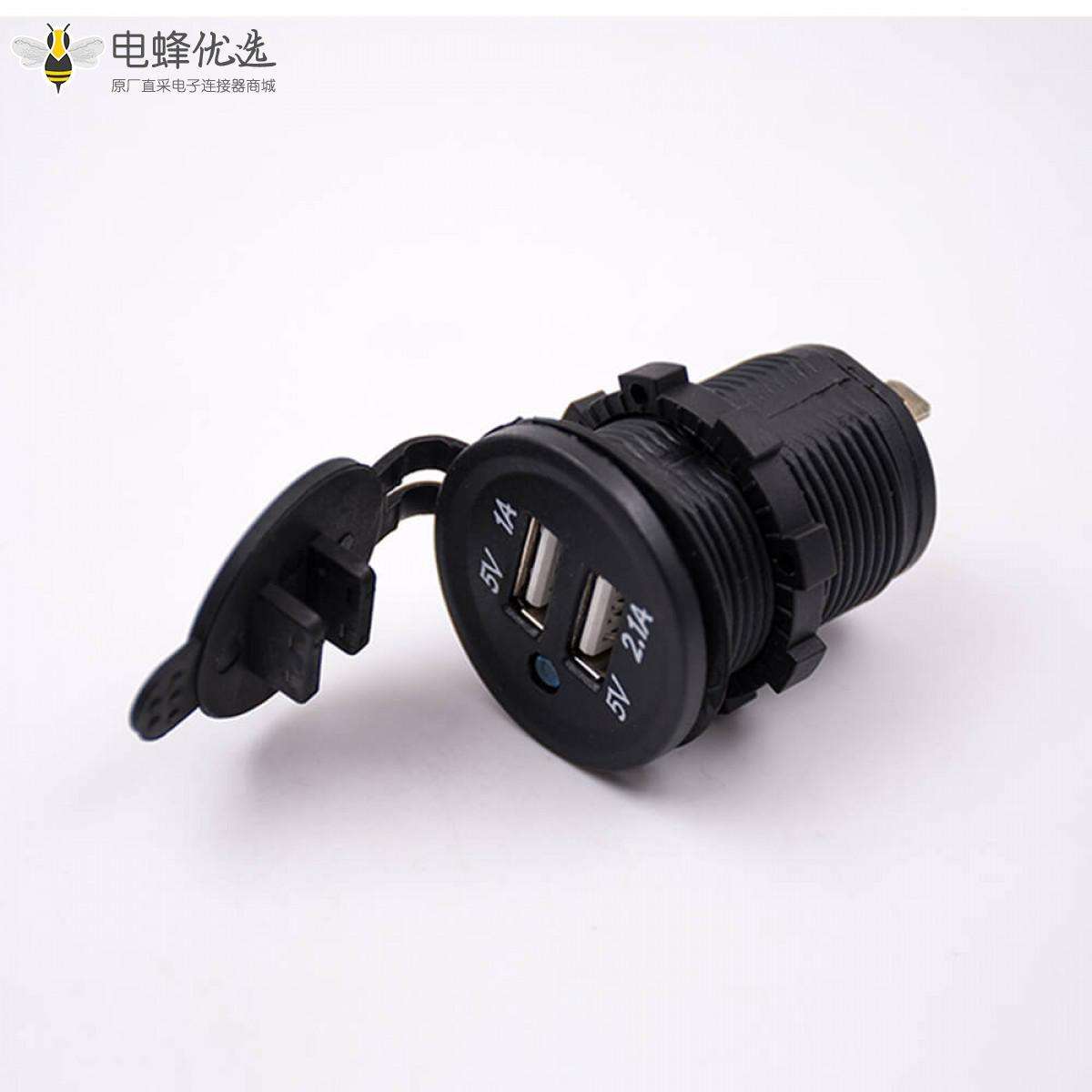 车载充电器,USB接口,双口,插座,插孔,5V,1A,2.1A,带防尘盖;